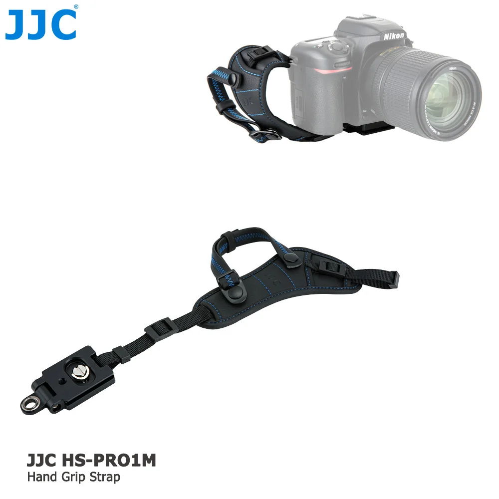 JJC HS-PRO1M HS-PRO1P ремешок для ручного захвата специально разработан для большинства DSLR камер с 1/4 "-20 гнездом штатива. Проденьте ремешок через наконечник камеры на другом конце. Этот ремешок обеспечивает дополнительную безопасность, чтобы предотвратить случайное выскальзывание из вашей руки. Ремешок регулируется для любого размера руки. Мягкая подушка для рук с отверстиями для воздуха делает ремешок удобным, дышащим и поддерживающим во время использования, что позволяет эффективно снять усталость рук. JJC HS-PRO1M черный/красный имеет металлическую базовую пластину для крепления к быстроразъемному ремешку, в то время как JJC HS-PRO1P черный/красный имеет u-образную пластину, чтобы камера была плоской. Оба они могут быть прикреплены к штативу для удобного использования через стандартный разъем штатива 1/4 "-20. Благодаря этому ручному ремешку вы получите лучшую защиту запястья, а также камеры и сможете наслаждаться съемкой.