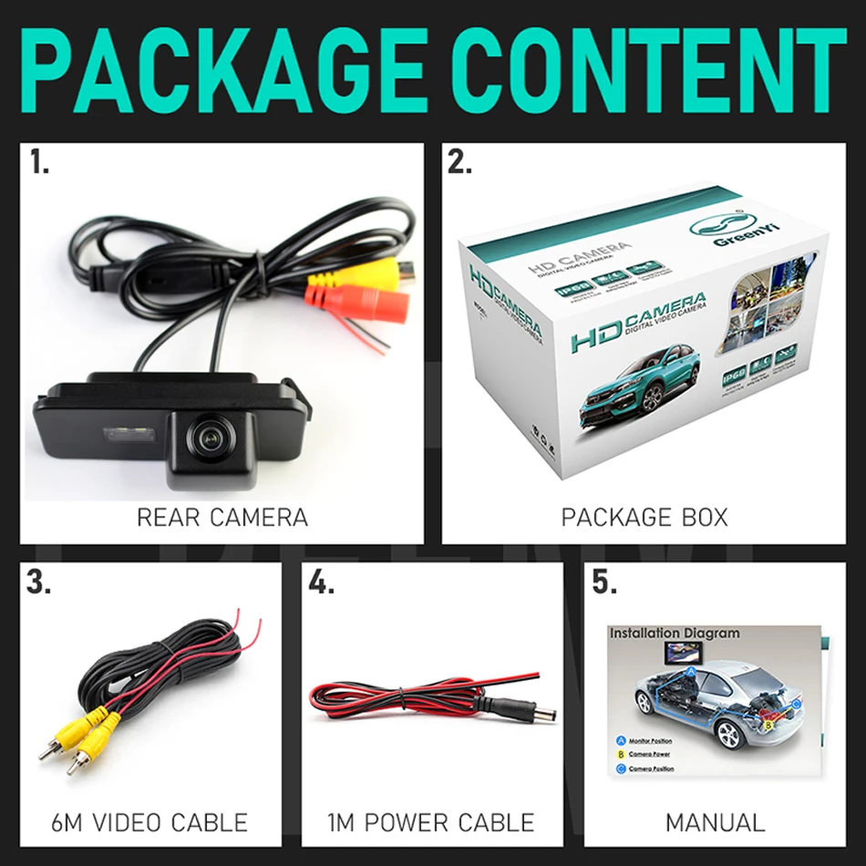 1 x камера заднего вида 1 х 6 м видео кабель 1 х Кабель питания 1 x Руководство пользователя