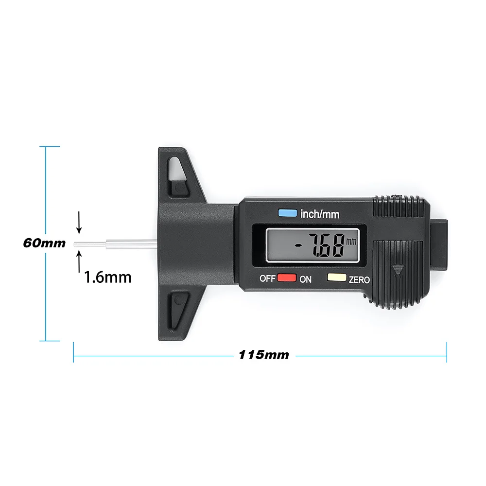 ОсобенностиЦвет: черныйМатериал: пластикВес: 44 гГлубина: 0-25 ммРазмер: 40 мм * 115 ммПростота в использованииБольшой ЖК-дисплей Метрическая/дюймовая система обмена для удобного чтенияНулевая оценка в любой позиции по шкалеПодходит для глубины протектора, износа тормозных колодок и колодок, удаляет батарею, когда она не используется в течение длительного времени,Дисплей мигает при низком заряде батареи,Аварийный сбой дисплея, выньте батарею в течение 30 секундПластиковый усиленный корпус для прочности и меньшего шанса эрозии