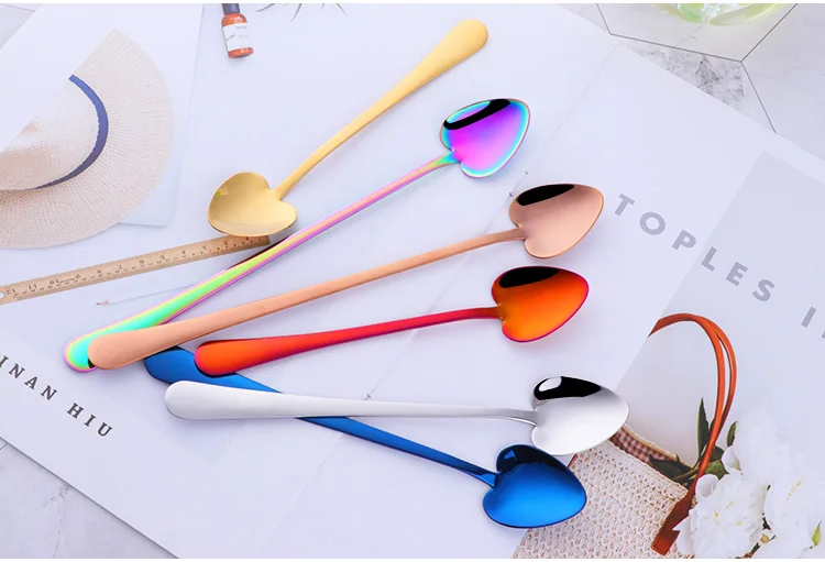 Креативная посуда в форме сердца, ложка, серебро, нержавеющая сталь, золотые кофейные чайные ложки, десертные ледяные кремовые столовые приборы, кухонные инструменты для кафе