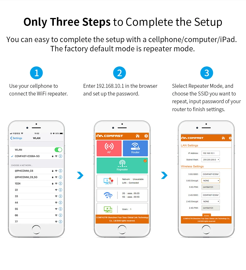 Шаг 3: выберите режим повторителя и coose SSID, который вы хотите повторить, введите пароль маршрутизатора для завершения настройки.