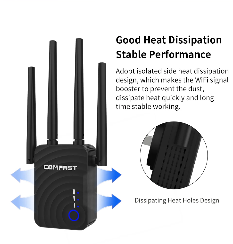 Двухдиапазонный беспроводной Wi-Fi ретранслятор расширение 1200 Мбит/с WIFI ретранслятор маршрутизатор точка доступа с 4 внешними антеннами Comfast CF-WR754AC