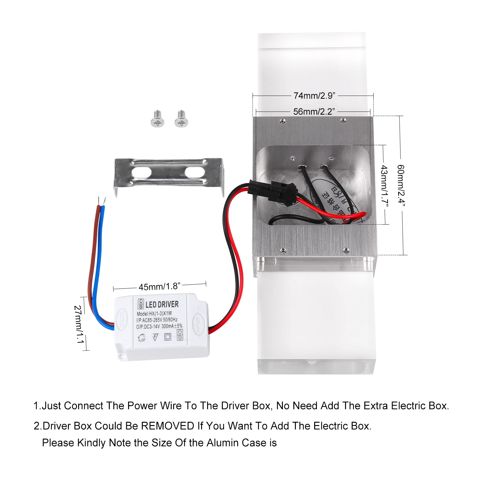 Type: LED wall lamp Material: Aluminum, transparent acrylic Quantity: 1pcs Item Color: Silver LED Type: COB Power: 6W Luminous Flux: 80-90LM/W Light Color: Cool white (6000-6500K) Warm white (2800-3200K) Dimmable: No Beam Angle: 120 degrees Waterproof: No Input: AC 85-265V 50/60Hz Lifespan: More than 50,000 hrs Certification: CE/RoHS Item Size: 17.5*6*3cm / 6.9*2.3*1.2" Net Weight: 0.29kg / 10.2oz Package: