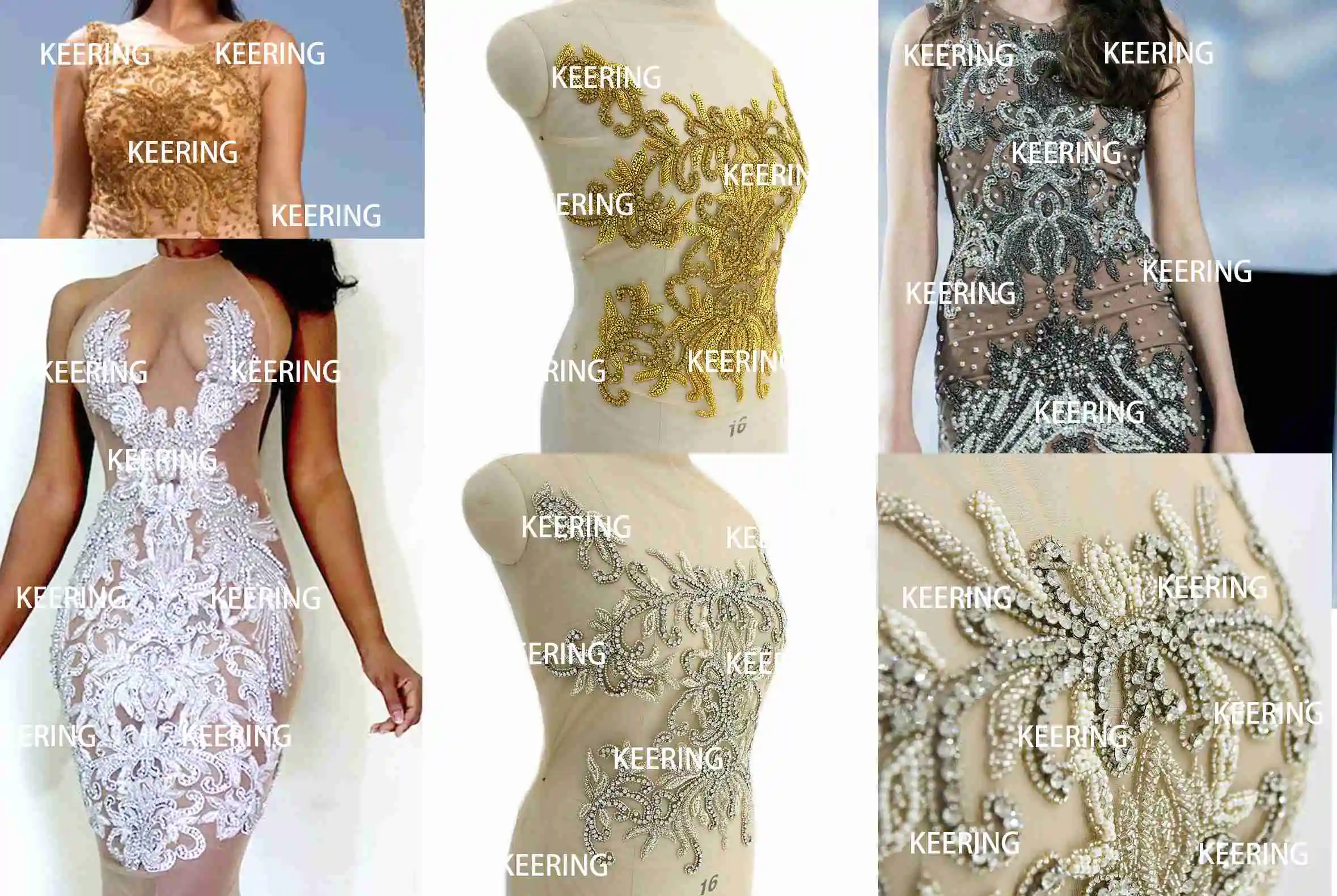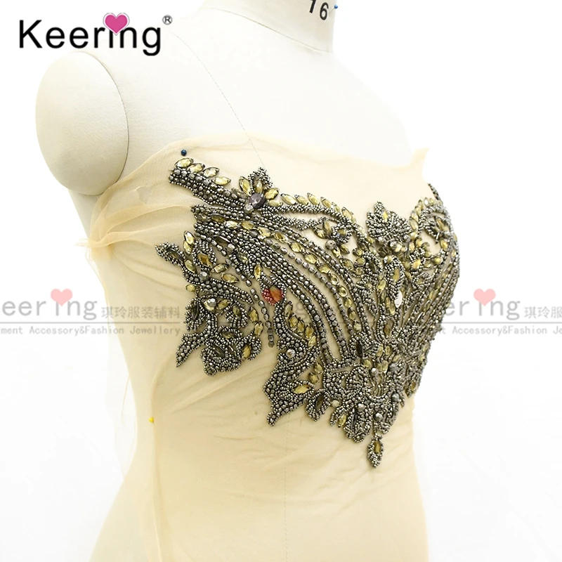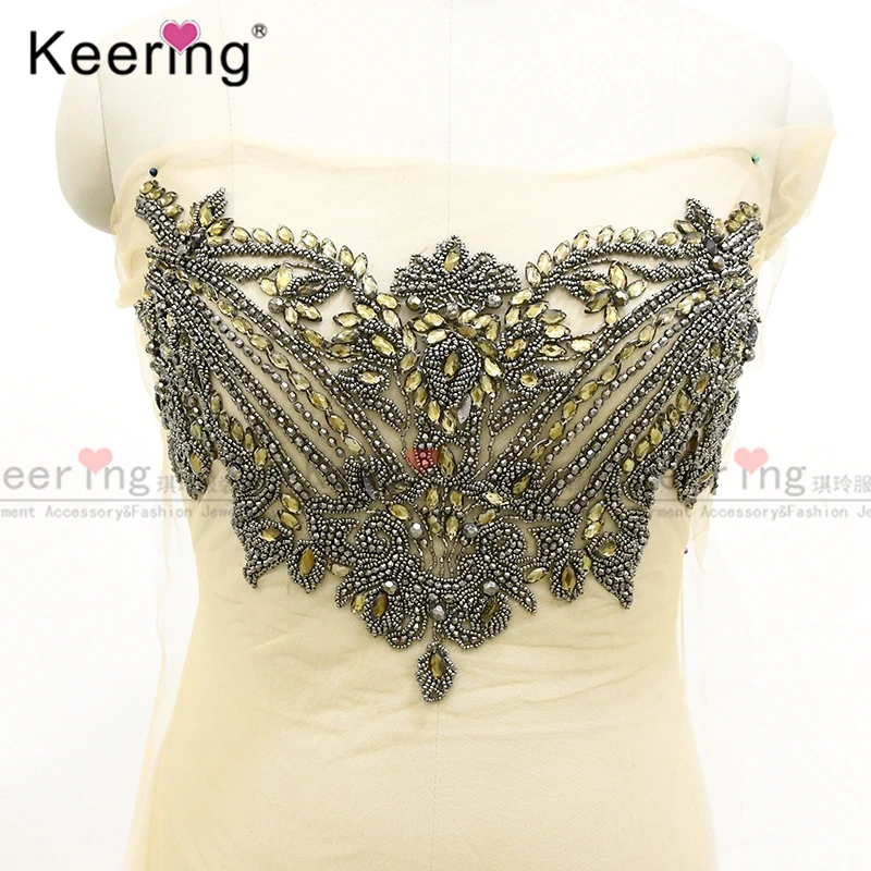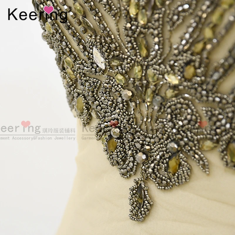 Ручная аппликация расшитая бисером и стразами для свадебного платья WRA-481