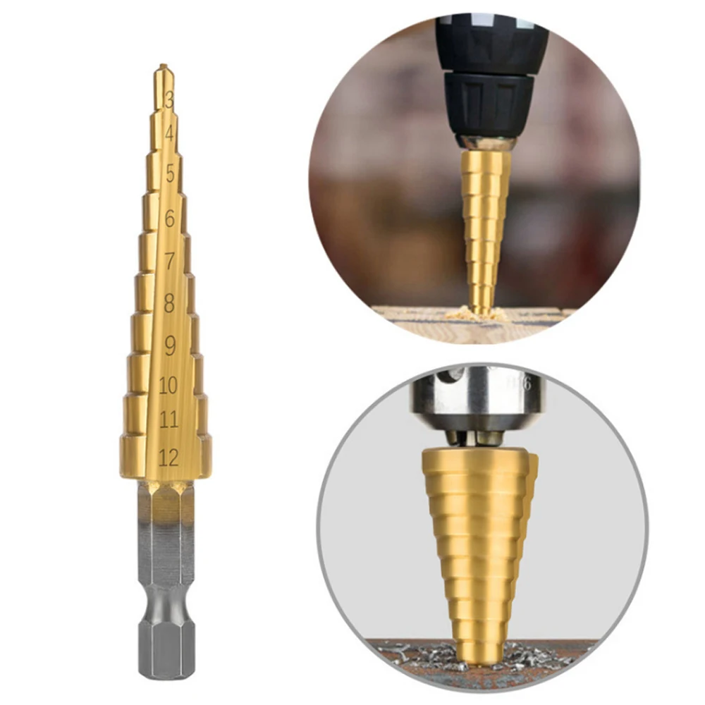 3 шт 1/4 дюйма шестигранный хвостовик HSS титановое покрытие набор ступенчатых сверл 3-12/4-12/4-20 мм