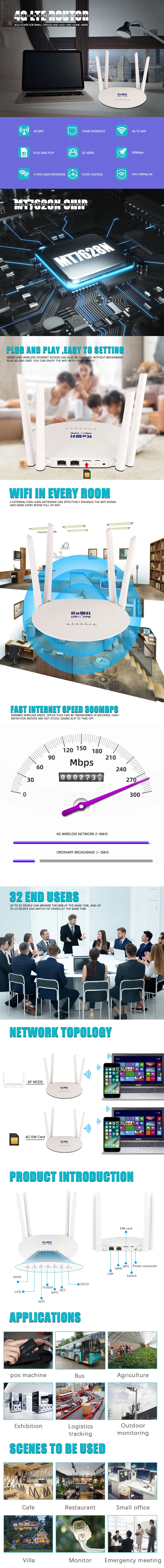 150Mbps 4G LTE CPE Router Wireless CPE Routers 3G/4G LTE Wifi Router With Sim Card Slot&4Pcs External Antenna Support 32Users