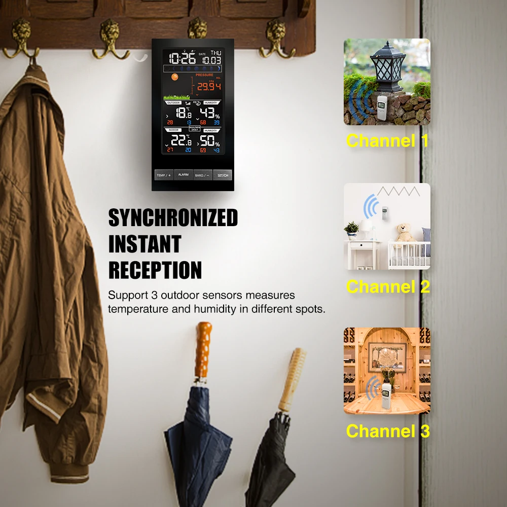 PT3352C беспроводная погодная станция датчик температуры и влажности цветной ЖК-дисплей Прогноз часов/открытый