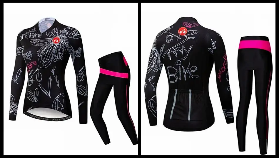 Weimostar Autumn Cycling Clothing Women Long Sleeve Cycling Jersey Set Pro Team MTB Bike Clothes Quick Dry Bicycle Jersey Suit Maillot Roupa Ropa Ciclismo Mujer