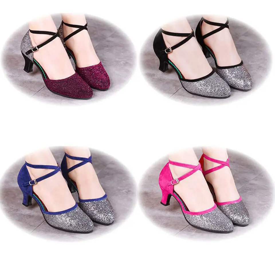 Женская обувь для латинских танцев; Танцевальная обувь для сальсы; Обувь для бальных танцев с закрытым носком; Блестящая Свадебная обувь для девочек на каблуке 5 см; Женская танцевальная обувь для танго