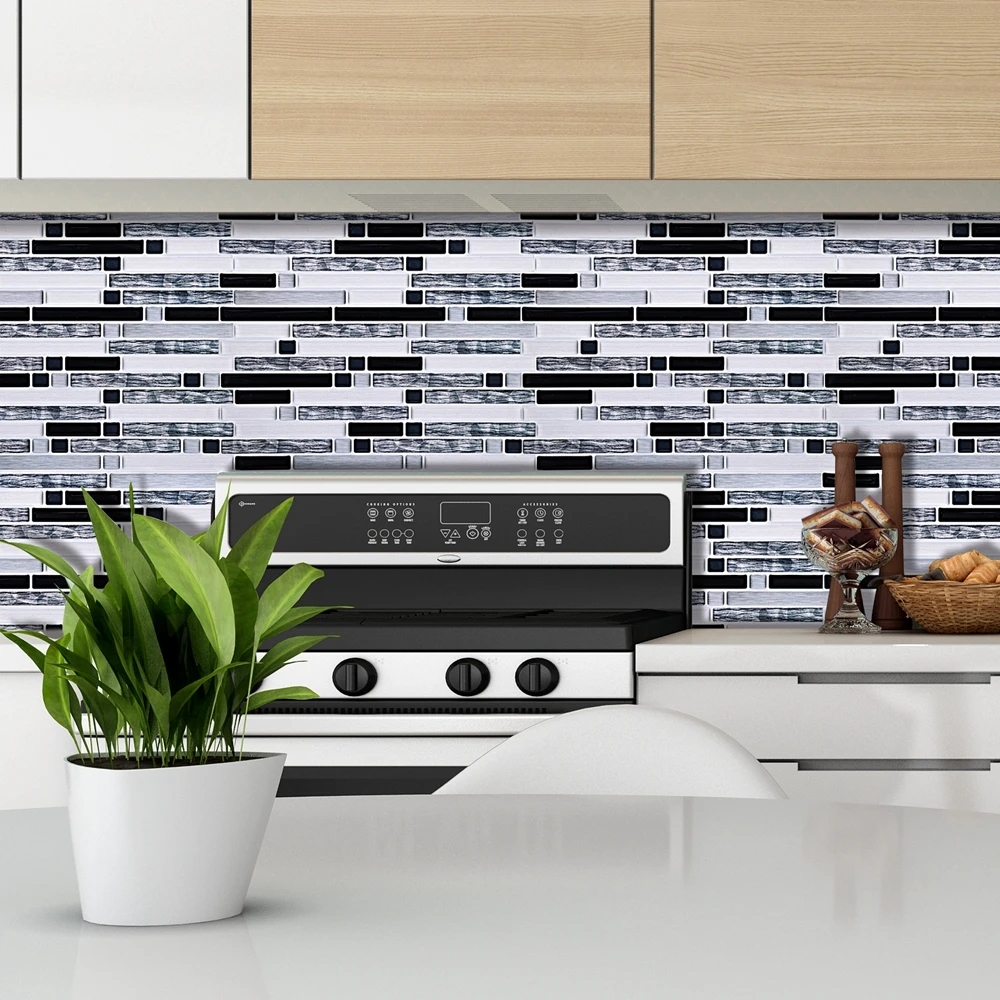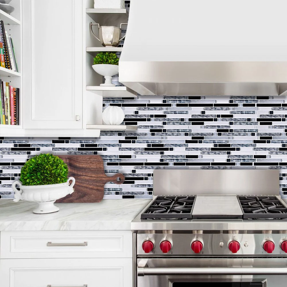 Пилинг и палочка могут быть обработаны на всех гладких, чистых и сухих поверхностях, таких как окрашенная гипсокартон или даже прямо над керамической плиткой. Просто очистить и приклеить, легко установить его. Все, что вам нужно, это линейка, карандаш, ткань и ножницы. Этот проект позволит вам сэкономить время и деньги по сравнению с реальной плиткой. И не стоит беспокоиться, что плитка не подходит к размеру Вашей стены, так как ее легко резать.
