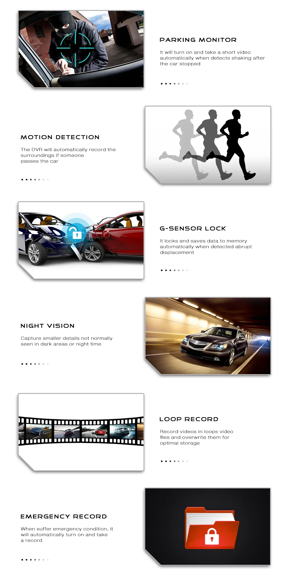 Package Contents:1 x Dash Cam, 1 x Charging Cable, 2 x Windshield Suction Mount