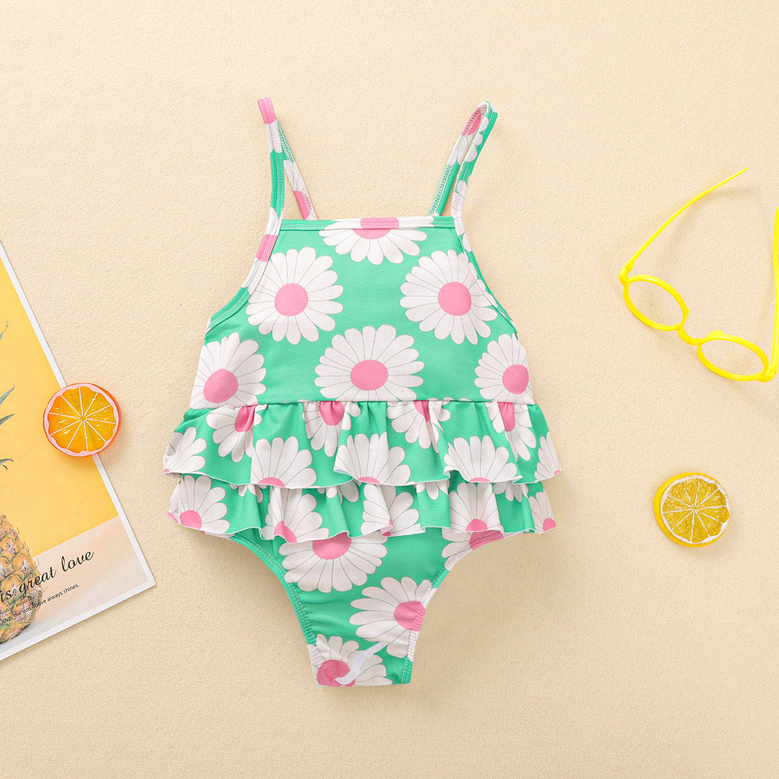 DescriptionGirl Swimsuit Sleeveless Flower Print Ruffle Bodysuit One-piece Suit1 x lLittle Girls Summer Bodysuit Swimsuit