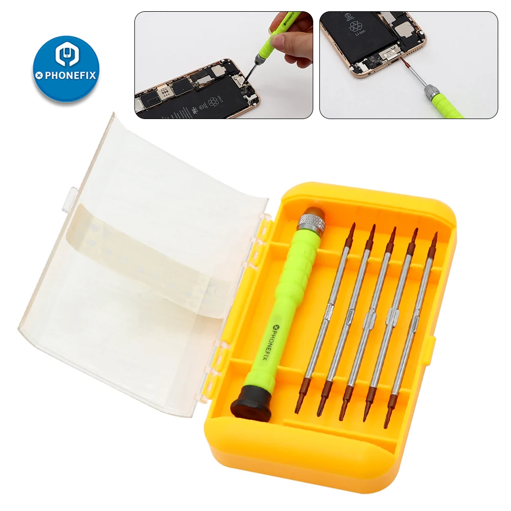 PHONEFIX 5 + 1 Набор прецизионных отверток для iphone, Samsung, huawei, xiaomi, мобильный телефон, набор инструментов для ремонта открывания, 1 отвертка с 5 двойными отвертками, 11 в 1 мобильный телефон, набор инструментов для ремонта открывания.