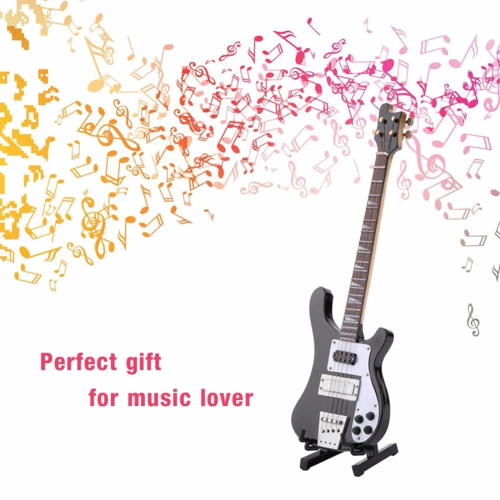 Черный Миниатюрный бас гитара Реплика с подставкой и чехол модель инструмента украшения подарок