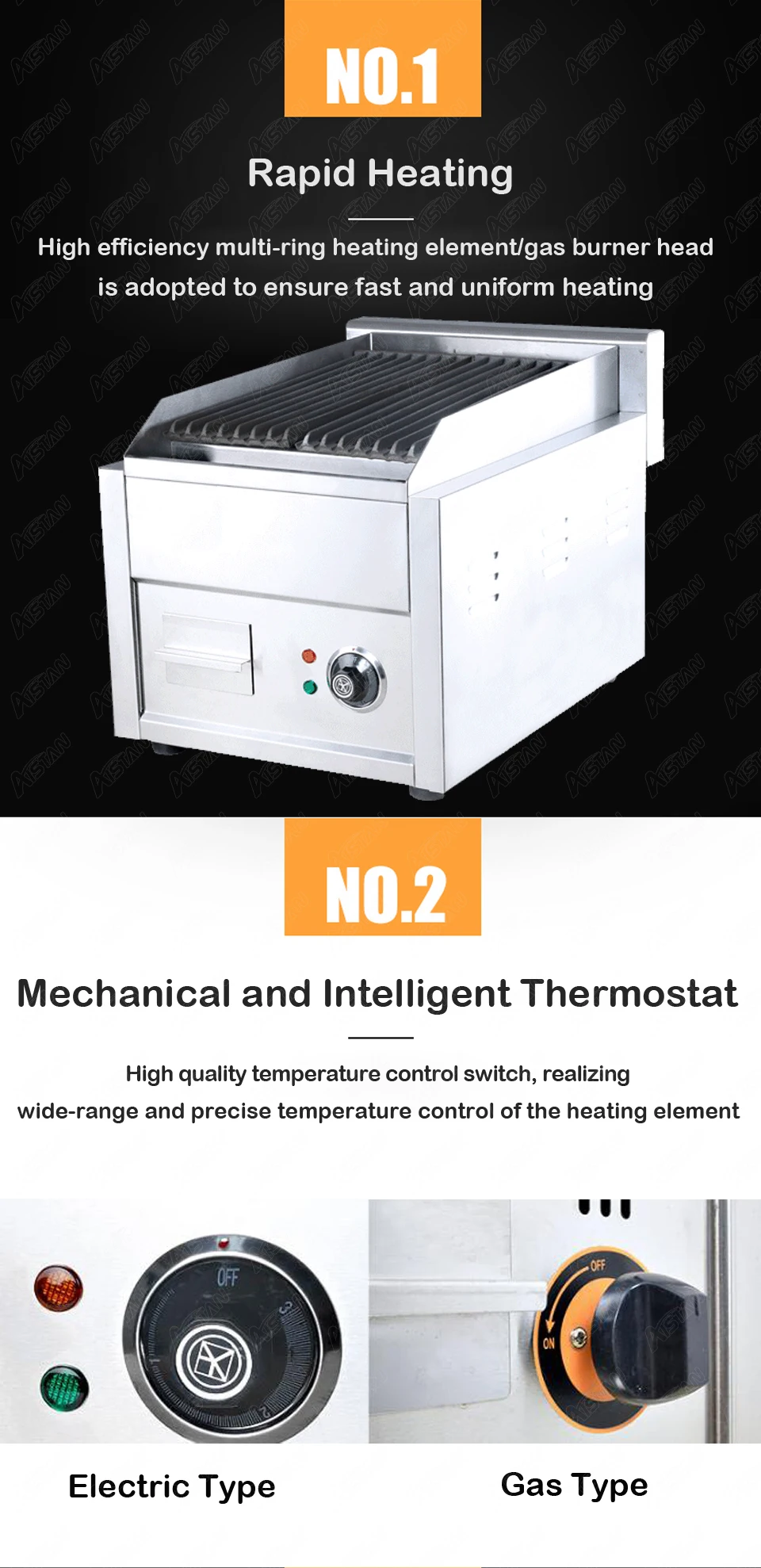 1. С устройством защиты от газа; 2. У них есть лоток для масла в шкафу, чтобы поймать масло для гриля и отходов. 3. Используйте электронную зажигалку для огня