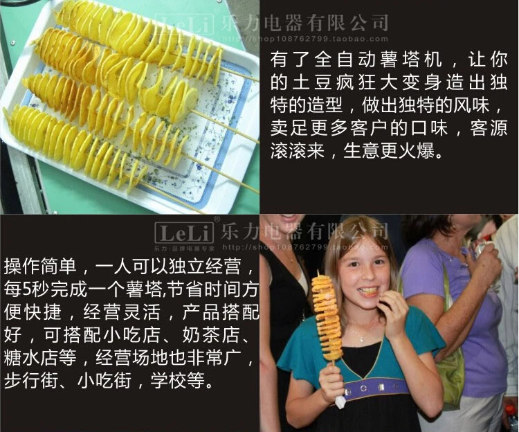 Лучший выбор продуктов представляет этот новый спиральный резак для картофеля. Сделайте кудрявый огонь, скрученные картофельные чипсы и вегетарианские закуски из нержавеющей стали, построенные картофельные ломтерезки. Он имеет режущую кромку торнадо или спирали, которая отлично подходит для использования дома или в ресторане. Спиральный резак для чипсов-отличный продукт для использования дома, в ресторанах и отелях. Продаем его на карнавалах, концессионерах, парках и т. д. мы должны покупать наши продукты непосредственно у производителя, так что вы знаете, что лучшие цены. Новый продукт с заводской упаковкой (не используется или отремонтирован) Featuers: Конструкция из нержавеющей стали Низкие эксплуатационные расходы Нескользящие резиновые ножки Простота в использовании Технические характеристики: Мощность: 50 Вт Лезвие x2 шт Палочки для кебаба: 16" Размеры: 470x200x210mm Ручка и резак: 11,5" Диапазон центральной резки: 7 "(Д) x 4,5" (Ш) x 4,5 "(В) Вес: 6 кг Метод для изготовления ювелирных изделий: 1 выберите свежий цельный картофель в картофель, каждый должен достичь веса 220 г золотого веса 2 бамбука в картофель, затем свежий картофель в картофельную башню, машина будет резать картофель вращения, становится поворотным картофелем! 3 затем вдоль бамбуковой палочки кусок ротационного порезанного картофеля был отрезан струной, которая после завершения ротационный картофель башни, 4, а затем до температуры 180 градусов и жареной! 5 свежих жареных в ротационный картофель башни, в соответствии с различными вкусами, и различные особые вкусовые изменения в различных вкусах! 6. Выберите вес каждого картофеля 220 г, в основном из-за того, что картофель, если он слишком мал, может привести к усадке картофеля после этого, почувствуете сухость! Если слишком большой, не вареный картофель, больше воды и более липкий вкус! 7 выбрать супер пальмовое масло салат масло может заменить маслостойкий, хороший, жареный не черный дым, имеет высокий нагрев, не легко характеристики кокса, низкое вложение! Поскольку он имеет характеристики низкого прикрепления, он не вызовет слишком большого количества масла, вкус не будет чувствовать себя жирным! Не ешьте слишком много жира, очень свежий и вкусный! Даже вегетарианцы также могут быть уверены, что еда! 8 вращающихся картофельных башен Особенности: ротационный картофель башня после 180 градусов температуры, вкус очень хрустящий. Иметь четкую структуру. Симпатичного дизайна. Сладкий! Смесь кристаллизации каменной соли и аромата черного перца, а также с различными специями для формирования различных вкусов