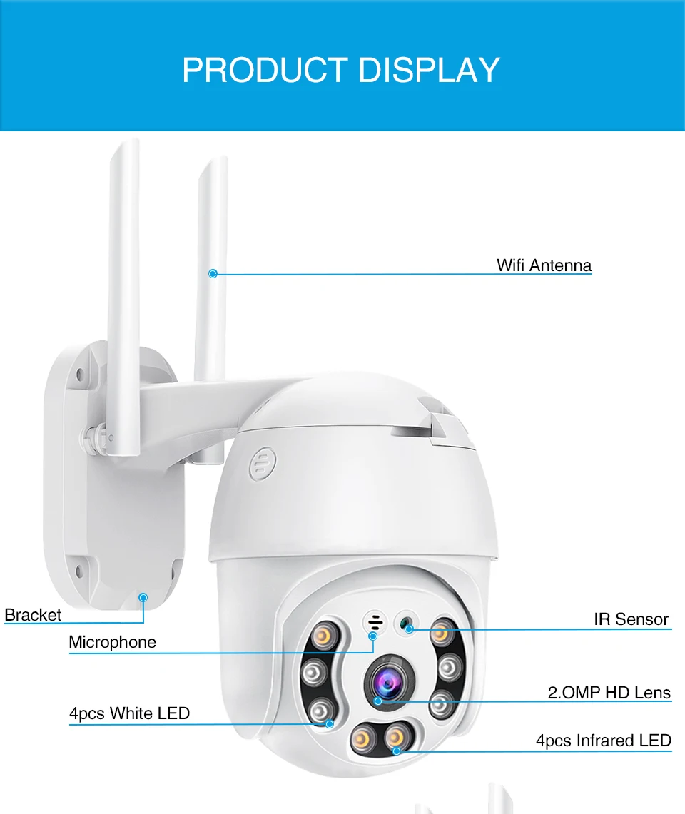 (Интеллектуальная сигнализация AI, сильный белый светильник, громкоговоритель High decibel)