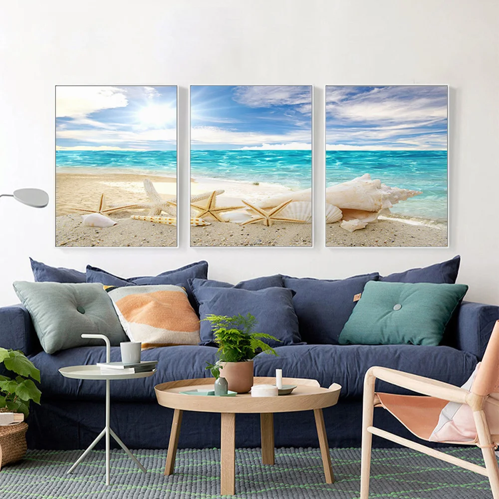 Список товаров: 1 * Тройная картина, Летний пляж и ракушка, большой размер, красивые HD Современные украшения для дома