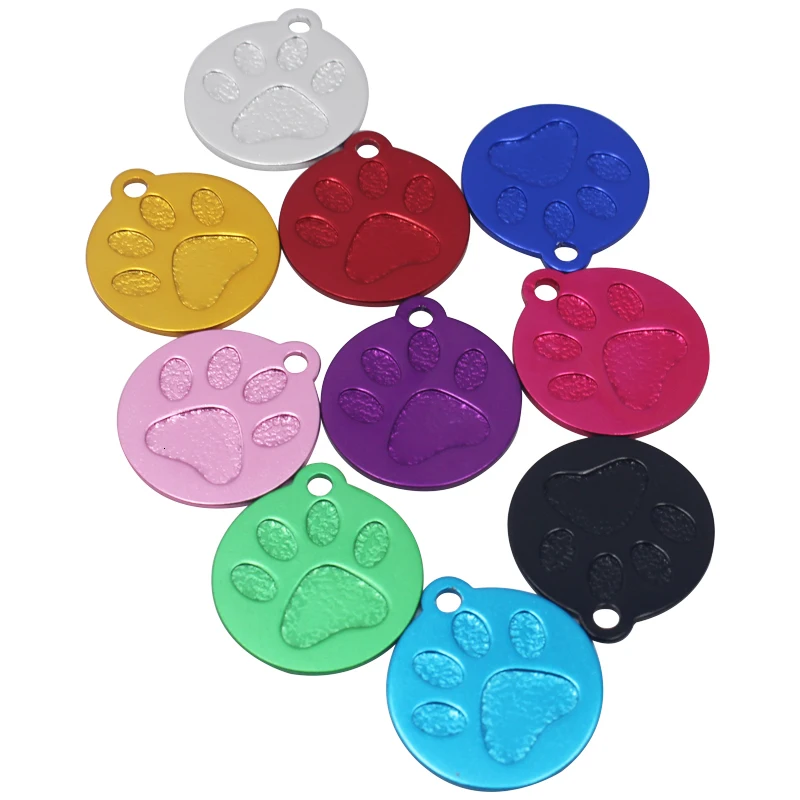 2pcs/lot Custom Pet Tags Engraved Dog Collar Pendant Paw Aluminum Dog ID Tags Customized Dog Cat Tag Collar 23*26mm