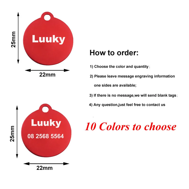 How to order: 1) Choose the color and quantity you like to order; 2) Please leave message engraving information ,one sides are available; 3) If choose blank tags,and then leave message,we will send blank tags to you.please note; 4) Any question,Just feel free to contact with us.