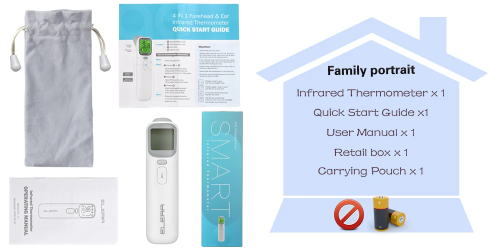 -Многофункциональный; Может измерять температуру уха, лба, комнаты, молока, воды и объекта