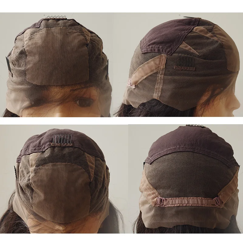 Средний коричневый швейцарский шнурок-Невидимый, мягкий и дышащий; полный кружевной фронтальный, 21-23,5 дюймов средний колпачок с регулируемым ремешком и 4 расчески, легко регулировать, носить удобно.