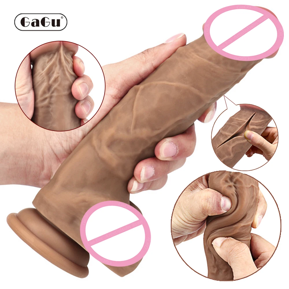 GaGu огромный реалистичный фаллоимитатор для кожи, мягкий жидкий силиконовый большой пенис с присоской, секс-игрушки для женщин, женская мастурбация