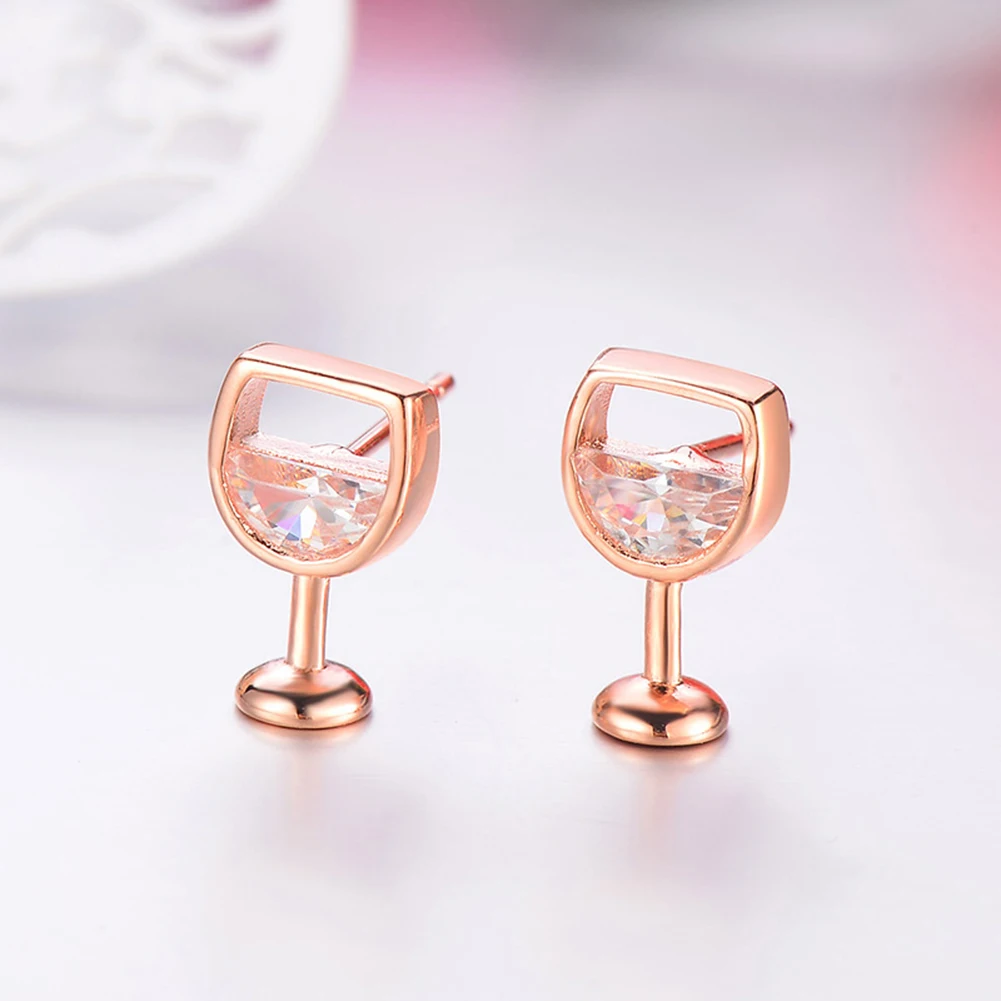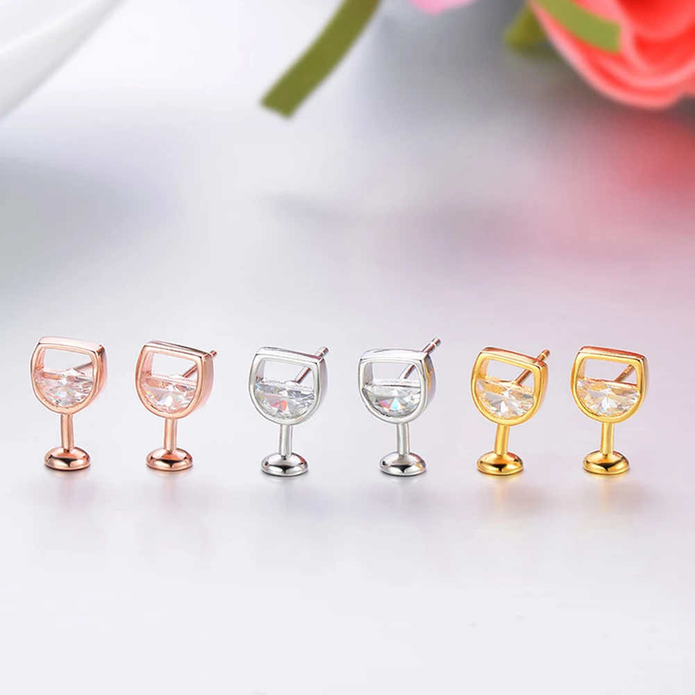 Модные простые женские серьги-гвоздики из бокала вина с кубическим цирконием, ювелирные изделия