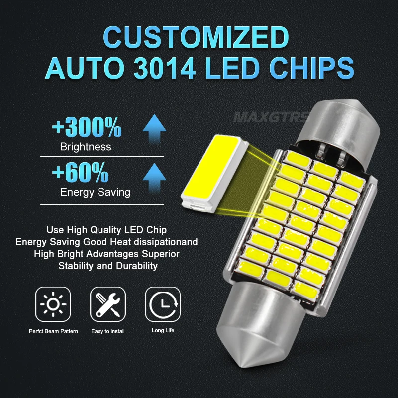 2x автомобиль гирлянда C5W 3014 Светодиодный чип лампы 12V Canbus Error Free 5 Вт светодиодные лампы для внутреннего купола Лампы для чтения супер белый 31/36/39/41 мм