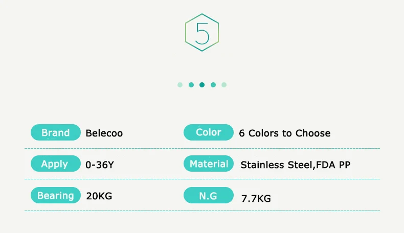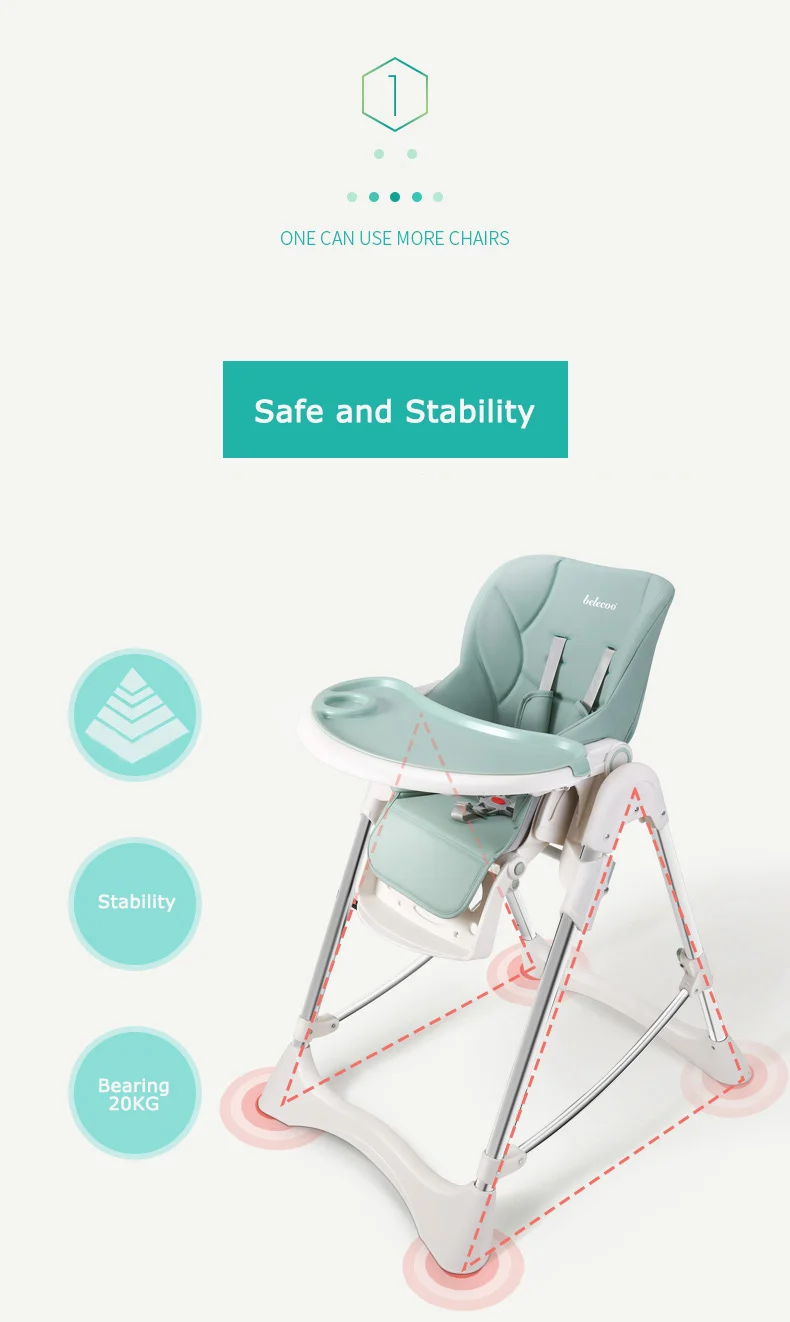 Feature: 1. Multi function 4 in 1 dining high chair meets every request of you and your baby; 2.Easy to install and carry; 3.Waterproof and antifouling leather fabric ,easy to clean; 4.5-grade backrest adjustment and 5-point safety belt can fully protect your baby; 5.Footrest can be adjusted to 3 grades. 7.Hwight can be adjusted to 7 grades, and food tray be adjusted to 2 grades. 8.Material :PP plastic and stainless steel.