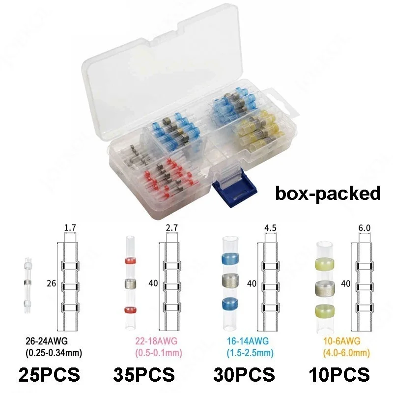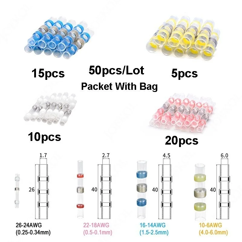 -Solder Seal Heat Shrink Butt Wire Connector Terminals Copper