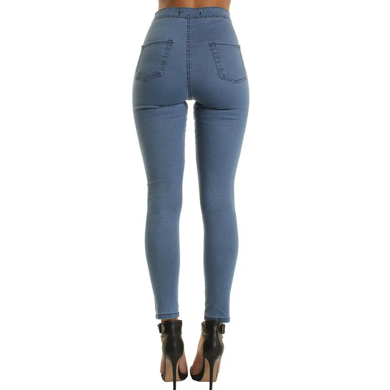 Slim Fit. Stretchy Skinny Pant with Destroyed Ripped Open on Knee.Two Back Pockets