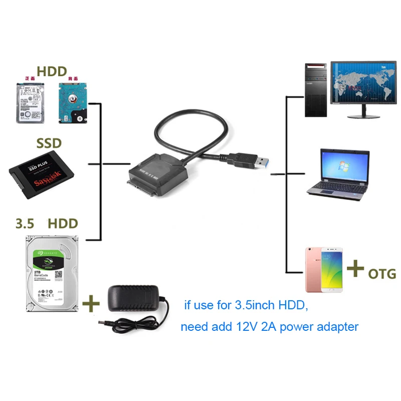 Примечание: Этот кабель просто использовать для 2,5 дюймов HDD, если вы используете для 3,5 дюймов HDD, пожалуйста, добавьте в 12V 2A адаптер питания