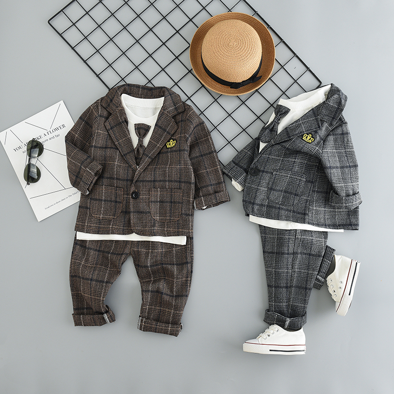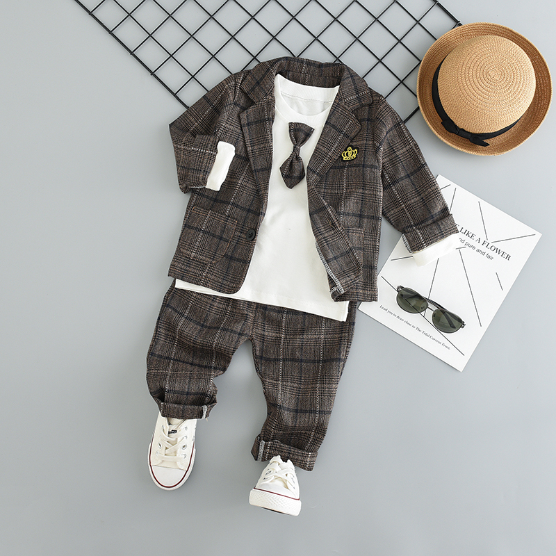 Детская одежда Одежда для маленьких мальчиков из 3 предметов клетчатое пальто с длинными рукавами хлопковая футболка + длинные штаны вечерние комплекты одежды