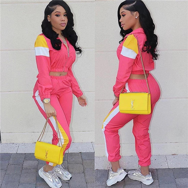 Женский Повседневный Спортивный костюм из двух предметов в стиле пэчворк Adogirl, укороченный топ на молнии + спортивные штаны, уличная спортивная одежда
