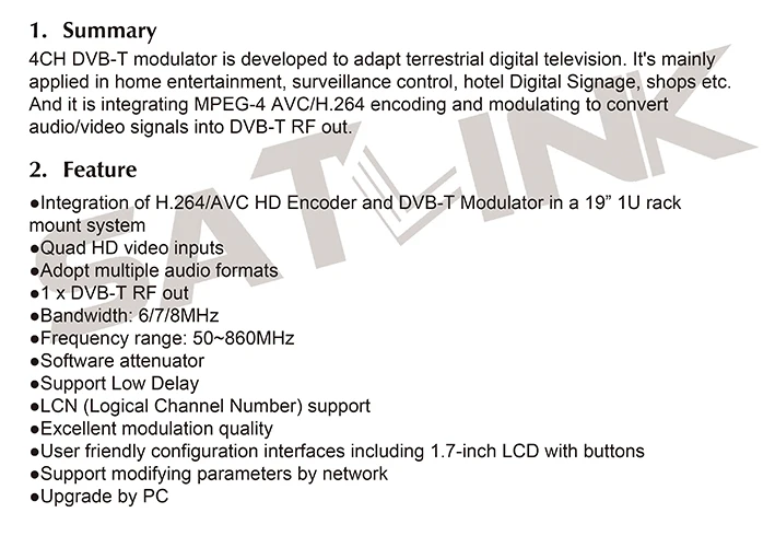 Satlink ST-6510 4 канала DVB-T модулятор MPEG4