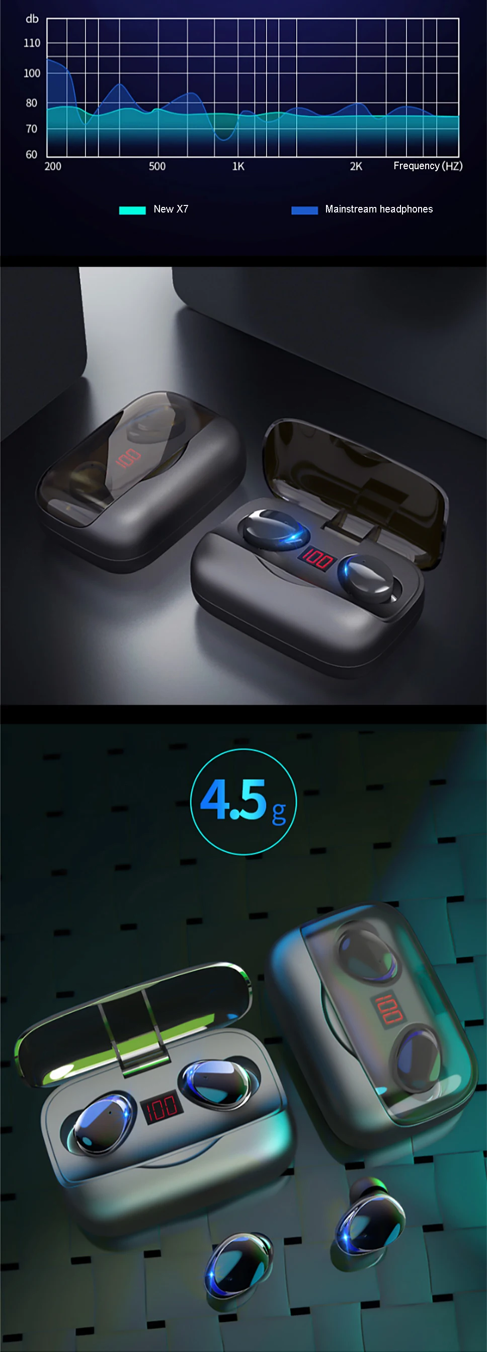 1. Comes with a rechargeable charging box, smart touch control, easy to charge the earbuds or your mobile phone