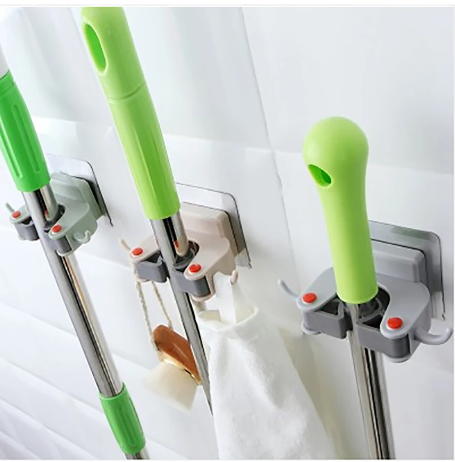 Material: ABS+TPR+ non-marking paste Size: as picture shown Color: blue, pink, green Use: kitchen tools, mops, brooms, toilet brushes, umbrellas, etc. Scope: kitchen, bathroom, living room, office, etc. Package Content: 1pc x mop holder Suitable walls: smooth tiles, glass, smooth wood, smooth meta