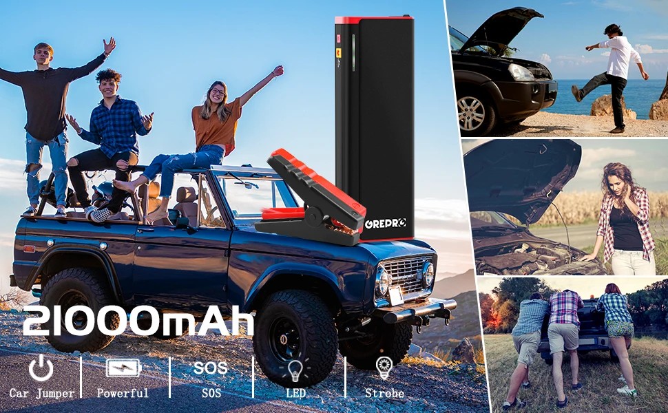 Это не только стартер, но и портативный внешний аккумулятор с реальной емкостью 21000 мАч. Этот продукт имеет встроенный автомобильный зарядный кабель и usb-кабель. Он может заряжать ваше мобильное устройство в любое время. Это встроенное зарядное устройство для домашнего адаптера, которое может облегчить зарядку автомобиля дома.