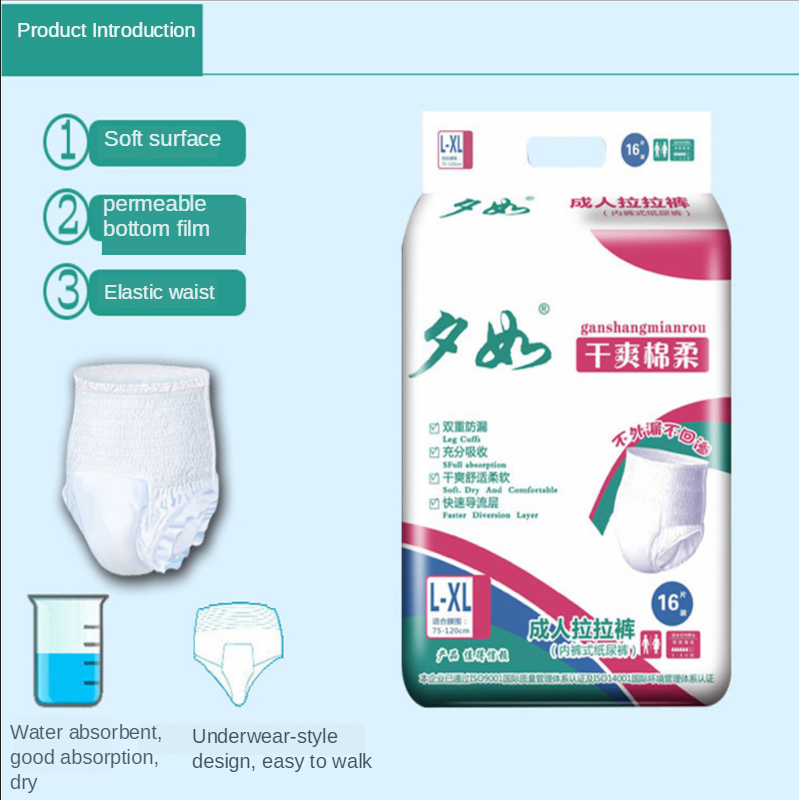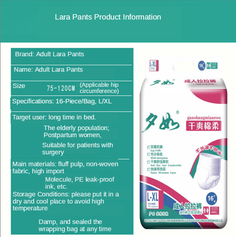Модель изделия: брюки для взрослых Характеристики продукта: 1 шт./мешок больших размеров XL предназначен для людей с избыточным весом Преимущества этого продукта: 1. Дизайн в стиле трусиков, легко ходить; 2, 360 градусов интегрированная формовка, большая абсорбция, легко впитывается, мягкий и удобный хлопок, здоровый и экологически чистый; 3, дышащая Базовая пленка, не боится сульфата в течение длительного времени 4, трехмерная защита, двойная анти-боковая утечка Подходящая Талия: 75-120 см, обхват бедер 2,6-3,8 ноги! Для людей: Долгосрочный постельный режим, пожилым людям нельзя заботиться о себе; Женщинам в послеродовой период, хирургическим больным и т. Д. Может быть использован Основной материал: Пушистая целлюлоза, Нетканая ткань, импортные полимерные материалы, полиэтиленовая пленка против протечек и т. д.