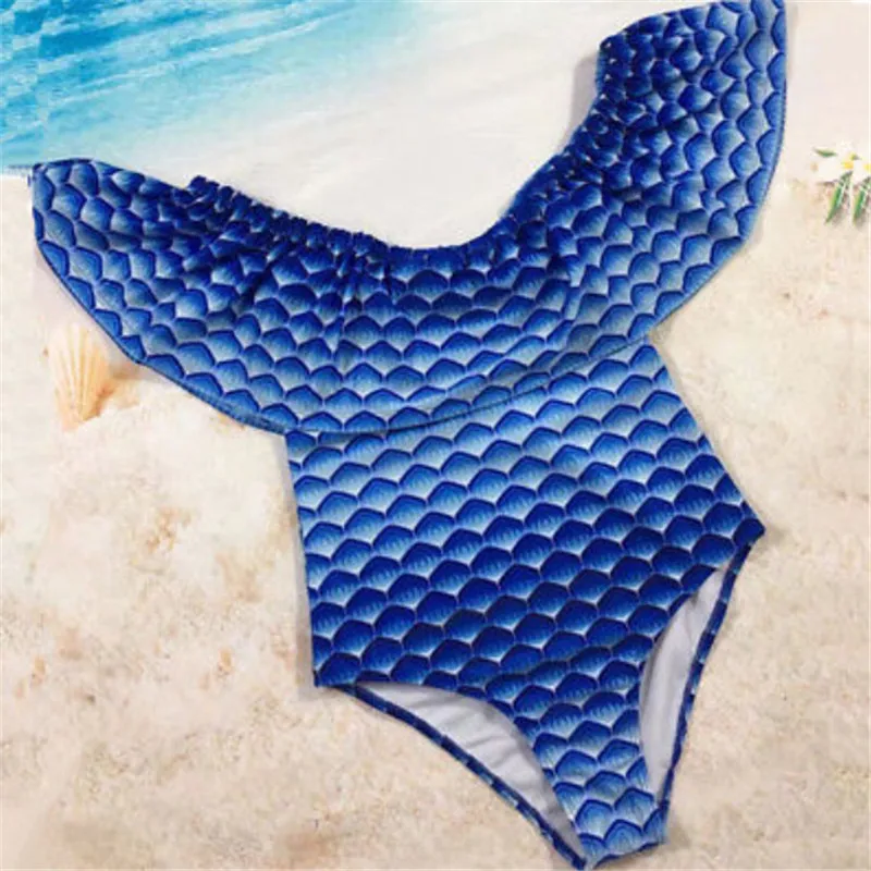 2018 синий цельный купальник Русалочки с открытыми плечами в виде листьев лотоса, монокини, купальный костюм, пуш-ап, открытая спина, цельная пляжная одежда