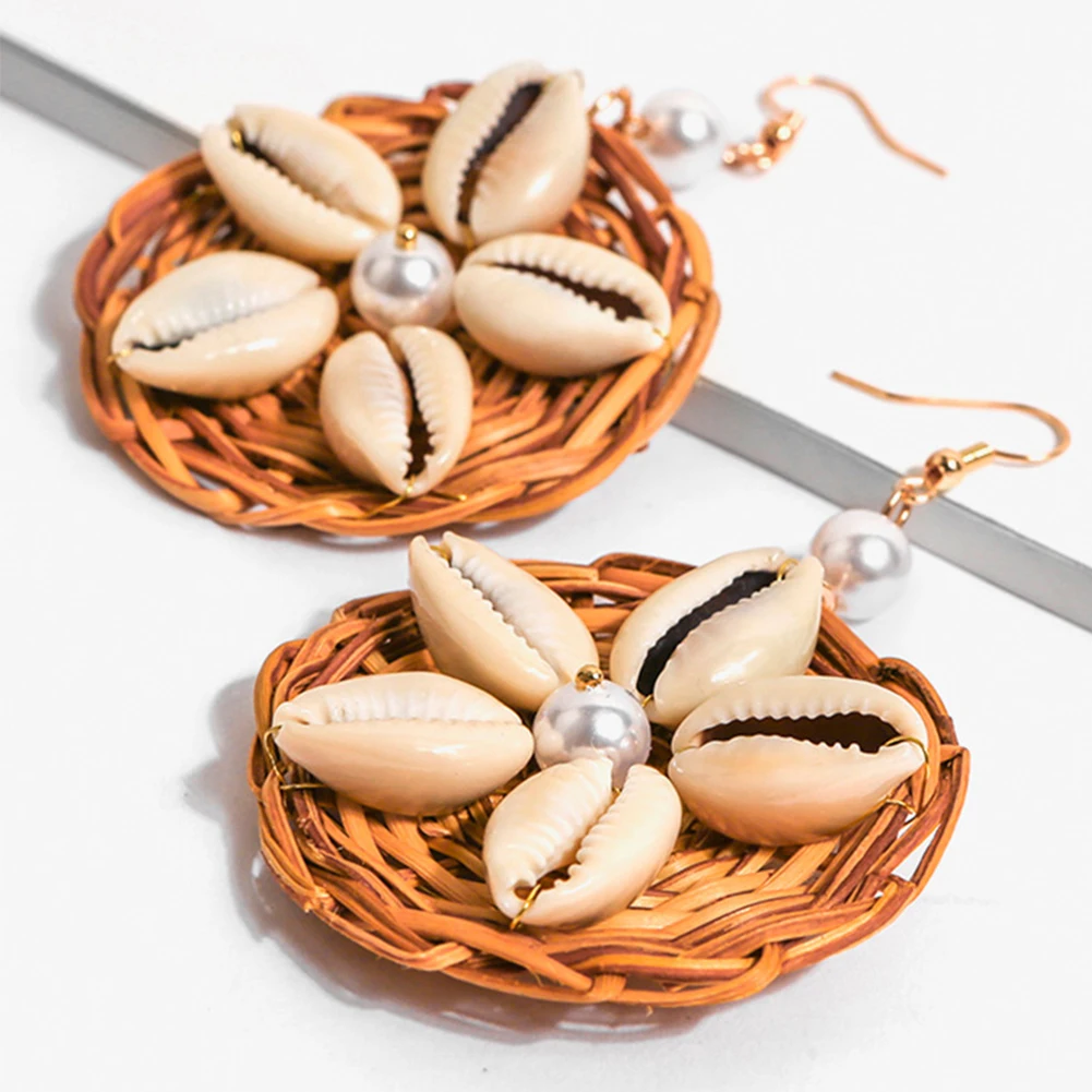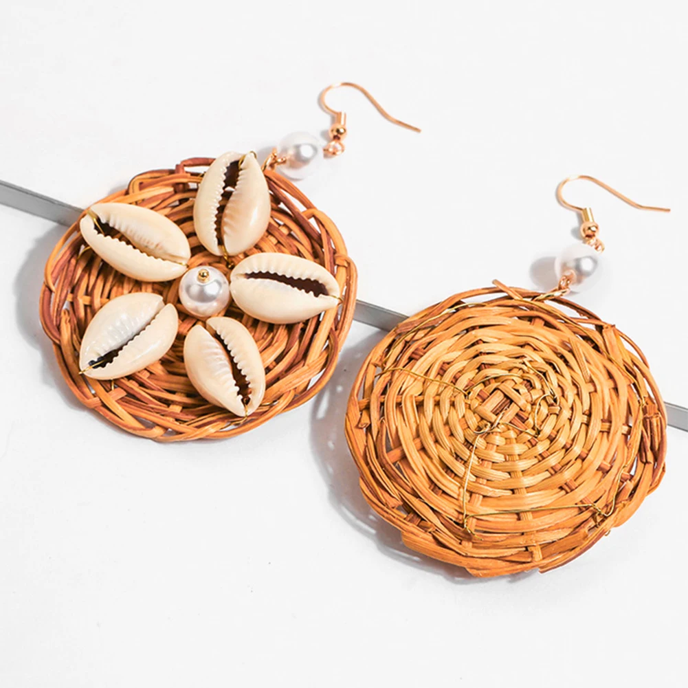Богемные женские большие Ротанговые круглые серьги с искусственным жемчугом, ювелирные изделия