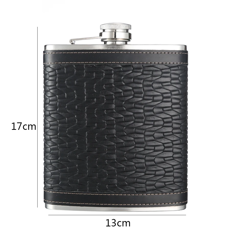 Smooth surface design make the liquor flask do not hurt your hand in accident. The stainless steel flasks are virtually unbreakable and are constructed with no seams, ensuring a long-lasting, leak-proof performance. Comes with a screw top cover with holder, so that you can\'t loose after you open it Specifications: Material: Stainless Steel + Leather Design: Black Fluted Leather Capacity: 18OZ Package Included: 1 x Hip Flask 1 x Funnel