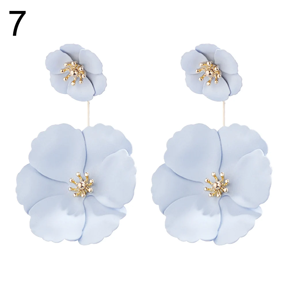 Модные женские двухслойные висячие серьги-гвоздики с цветочным узором, украшения для украшений
