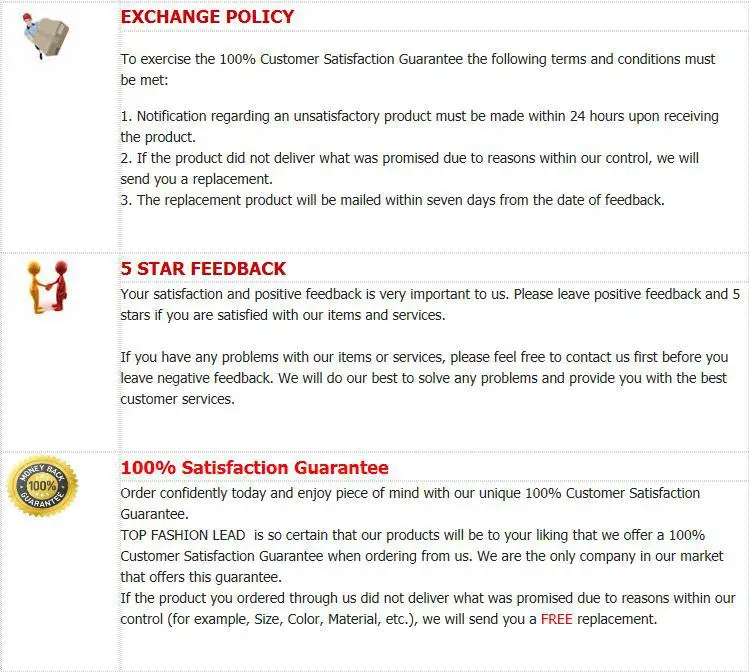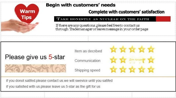 Мы стараемся ответить на ваши письма как можно скорее, однако из-за большого количества ежедневных входящих писем и разницы в часовых поясах мы не сможем ответить на ваши письма немедленно. Мы ответим вам в течение 1–2 рабочих дней Если вы не получили от Нас никакого ответа, пожалуйста, проверьте свою электронную почту, чтобы ваш почтовый ящик не достиг полного размера, чтобы обеспечить вам лучшее обслуживание, пожалуйста, Отнеситесь с транзакцией честно. Отзывы-это наша жизнь, пожалуйста, дайте нам возможность решить любую проблему. Мы понимаем проблемы и разочарования, которые могут возникнуть у вас, Прежде чем оставить нейтральный или отрицательный отзывы, пожалуйста, свяжитесь с нами, чтобы получить лучшее решение. Спасибо. Если у вас есть какие-либо вопросы, пожалуйста, свяжитесь с нами!
