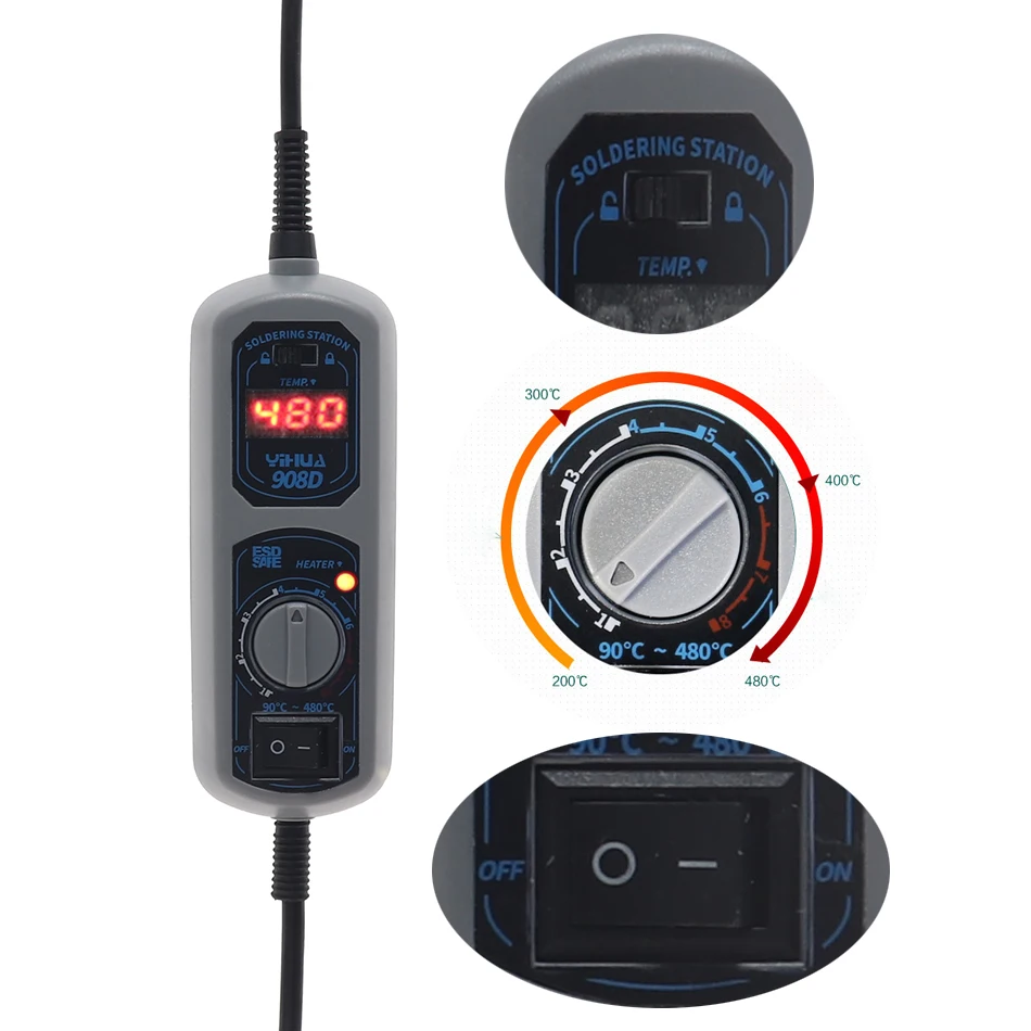 YIHUA 908D 220V/110V soldering station mini portable adjustable soldering iron soldering tool welding repair EU plug