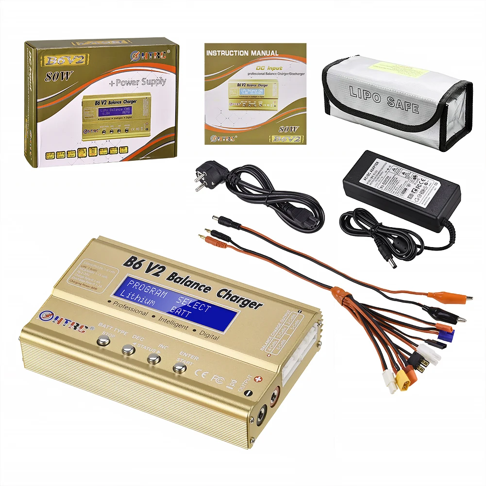 HTRC imax B6 V2 80 Вт Зарядное устройство для баланса батареи + адаптер переменного тока 15 в 6A + защитный чехол для аккумулятора LiPo + набор кабелей 8 в 1