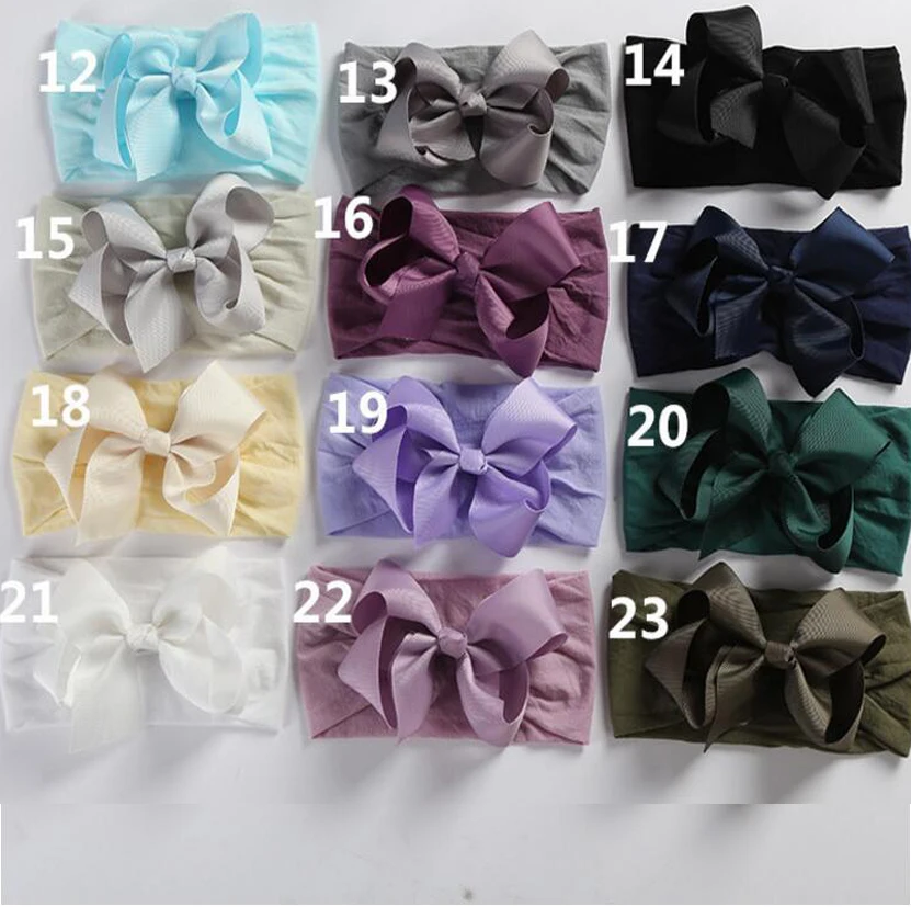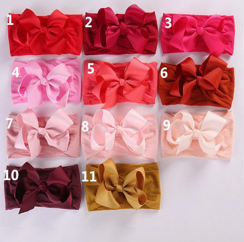 12 шт./лот, мягкие нейлоновые детские повязки с бантом, лента для волос, нейлоновые повязки на голову, аксессуары для волос для маленьких девочек