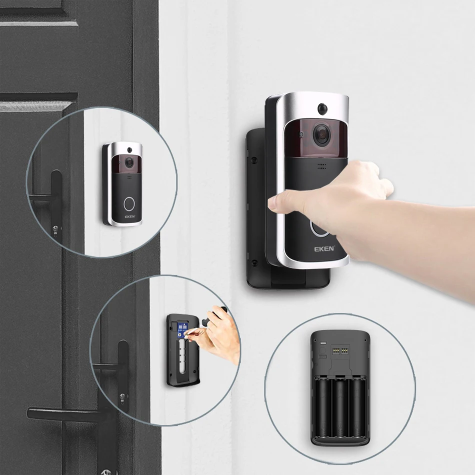 Система двусторонней внутренней связи в режиме реального времени с эхоподавителем В дверной звонок встроен пассивный инфракрасный датчик, который может улавливать незначительные движения. В режиме реального времени Мониторинг доступен. Вы можете смотреть видео в любое время и в любом месте через ваш мобильный телефон Опасность открытия неправильной двери или смущения в том, что посетители будут ждать, пока никто не будет дома. HD видео и два- Звук позволяет сделать ваше общение более четким.