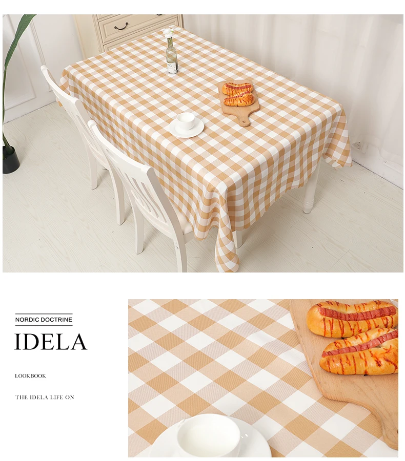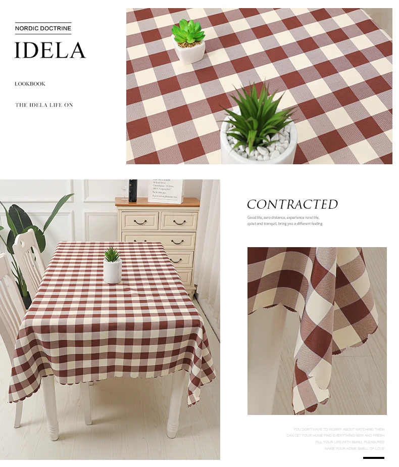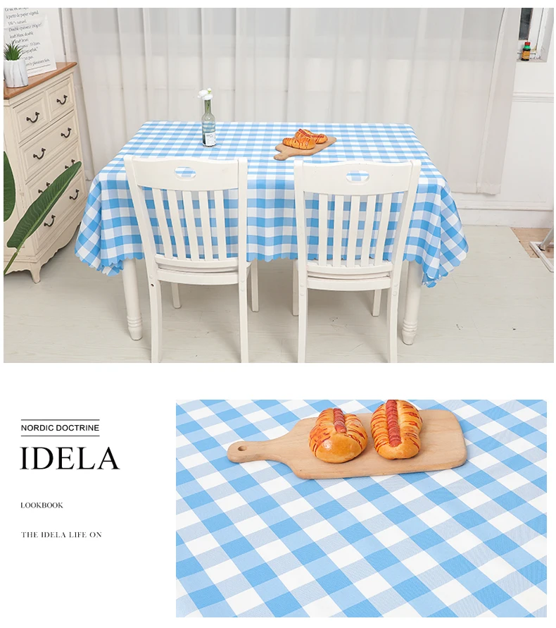 Простая полиэфирная скатерть, покрытие стола, столовое белье, узор в клетку